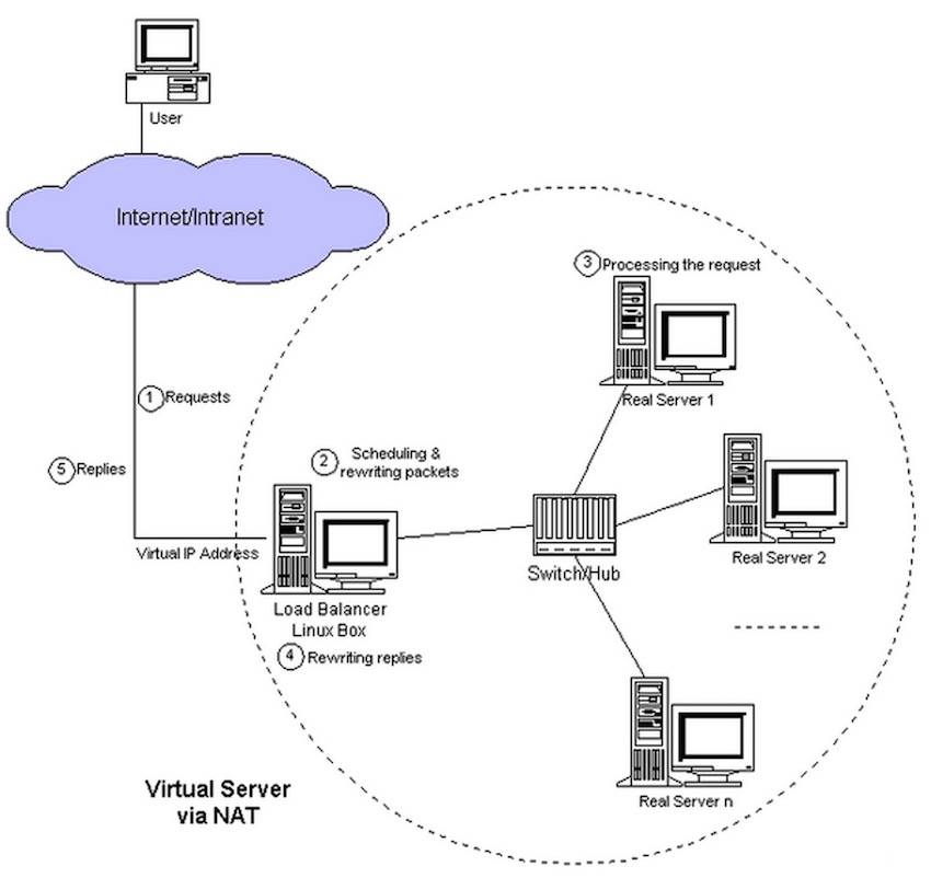 优点:集群中的物理服务器可以使用任何支持TCP/IP操作系统,物理服务器可以分配Internet的保留私有地址,只有负载均衡器需要一个合法的IP地址。